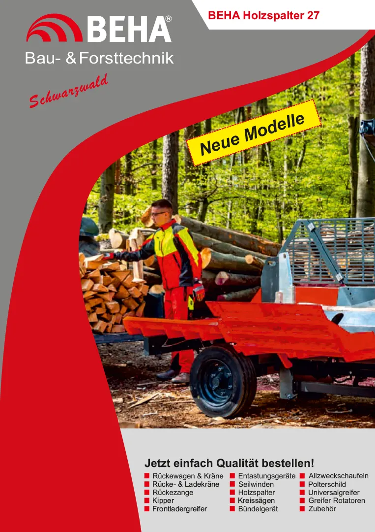 Bei Beha Bau & Forsttechnik ist es unser Ziel, Ihnen zuverlässige Arbeitsgeräte für den Bau- und Forstbereich zur Verfügung zu stellen. Ob Rückewagen, Seilwinden, Holzspalter oder andere Produkte – wir bieten Ihnen robuste Lösungen, die Ihren Arbeitsalltag effizienter und leichter machen.